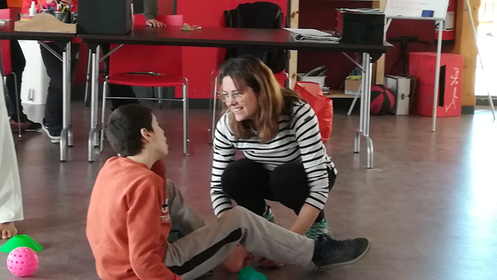 Photo : Anna Cauvin, formatrice et coordinatrice Intensive Interaction en France et coordinatrice de Divertisens, avec une apprenante